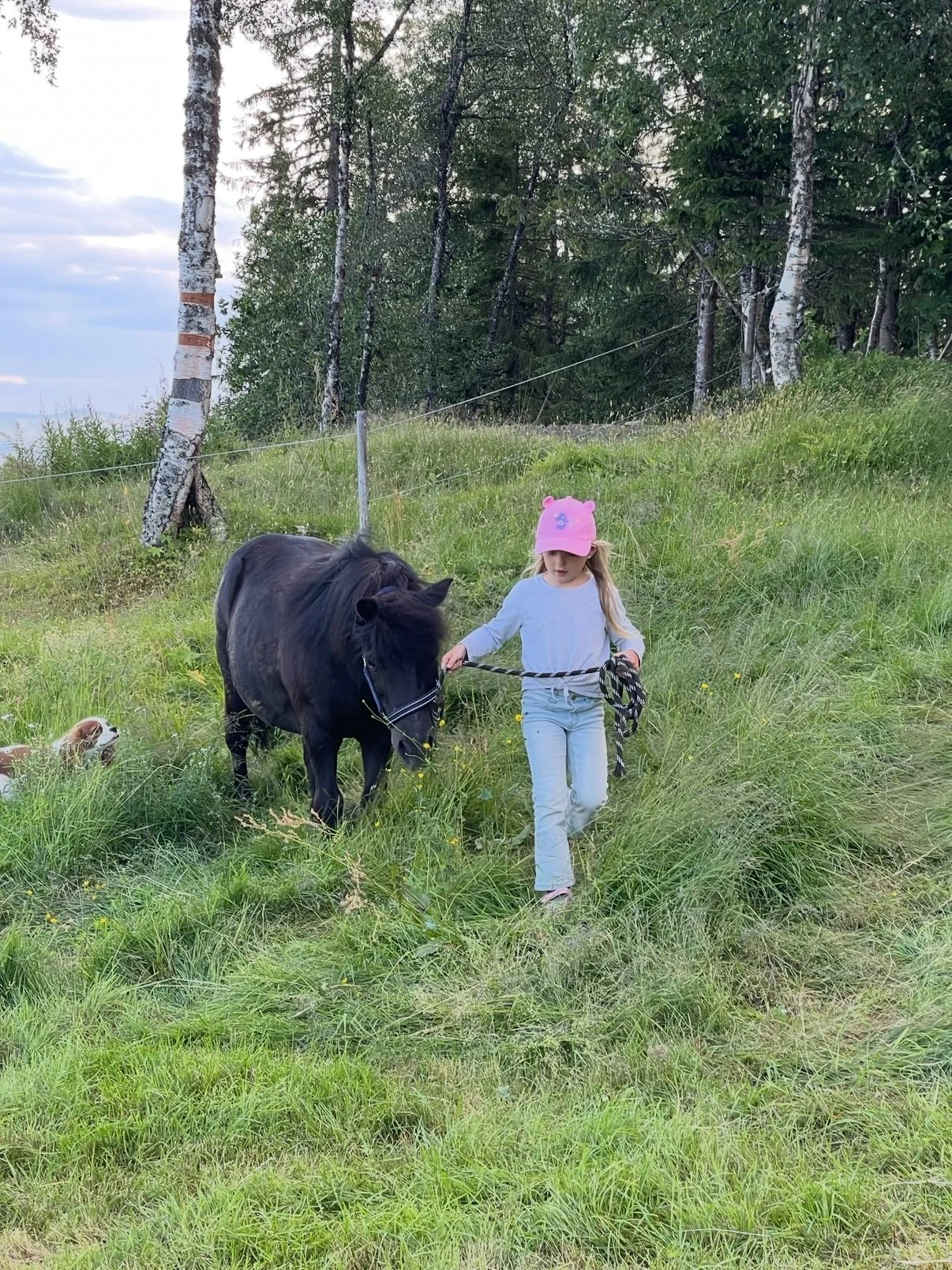 Om sommeren har vi kyr, hester, kaniner og hunder oppe på seteren.
